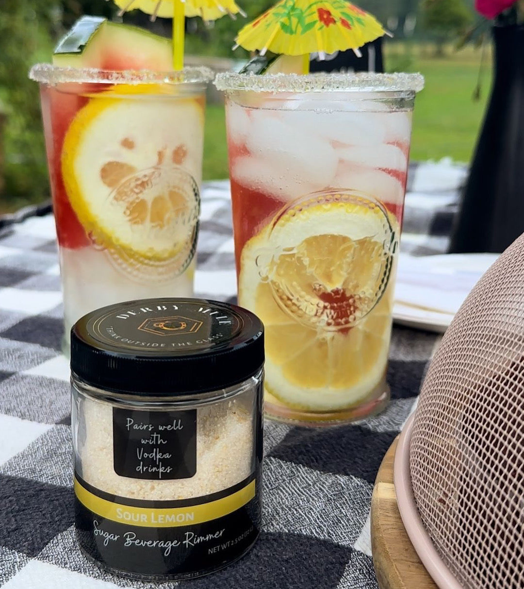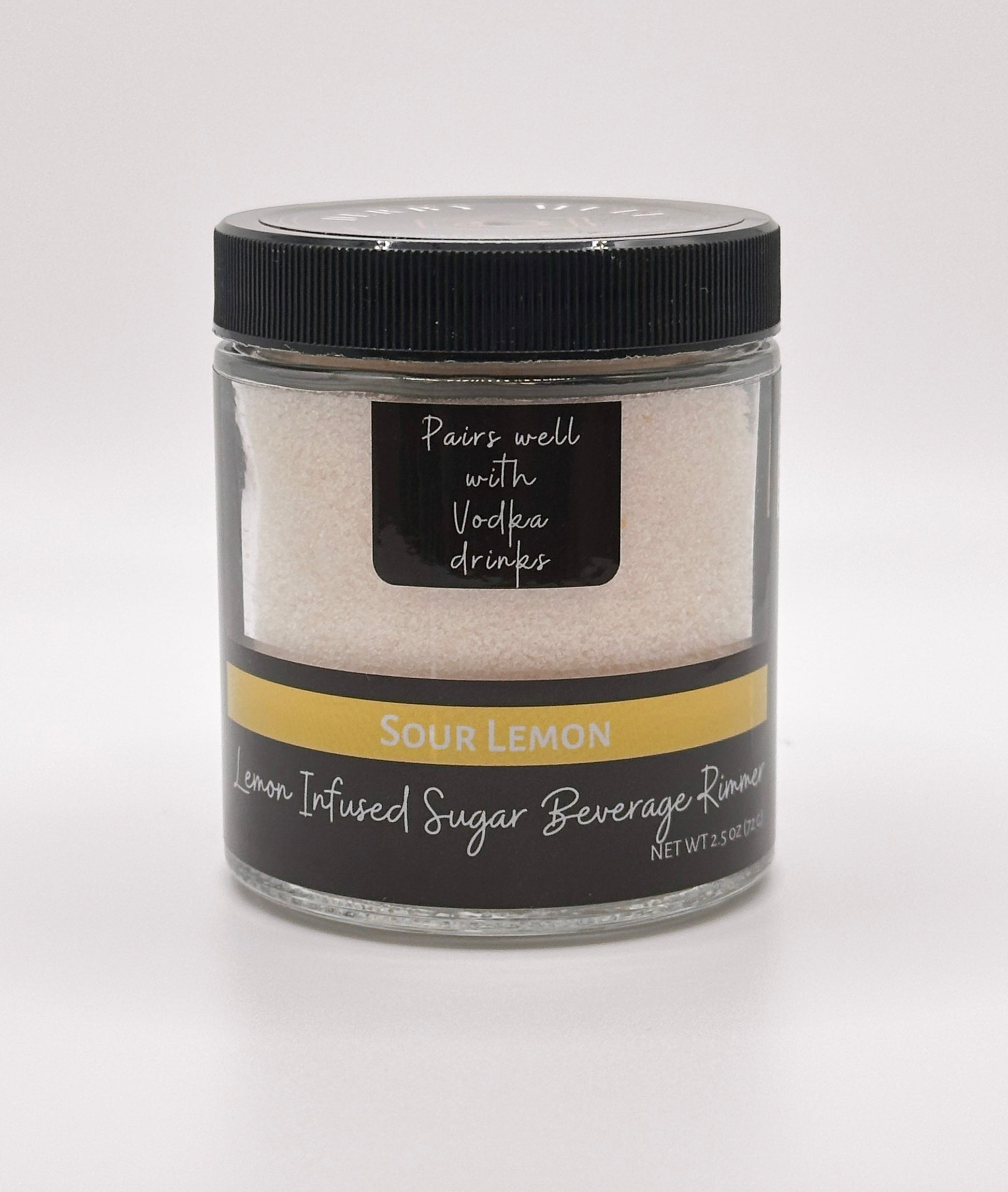 Craft your perfect cocktail and transform every sip into a gourmet experience with Derby Mule's Sour Lemon Beverage Rimmer. Crafted with fresh lemons this unique cocktail garnish is the perfect balance of sour and sweet.